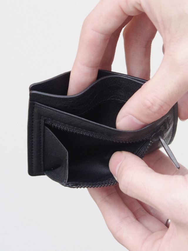 カードケースを主たる機能としながらマチ付きのアウトポケットで小銭も収納可能な2役をこなす便利な一品。手に馴染む上質なレザーと国内職人による確かな縫製がクオリティの高さを裏付けます。