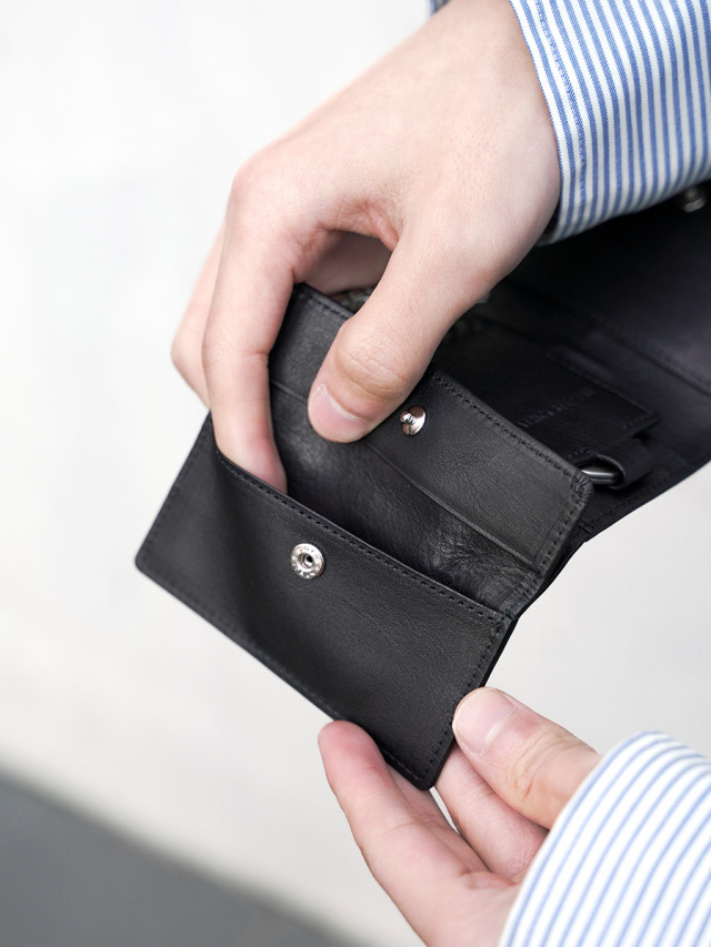 革はなるべく薄く軽く仕上げつつも、しっかりとした革本来の丈夫な質感も備えたいという思いから開発されたカウレザーを採用したレザーアイテム。