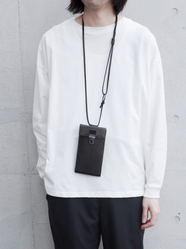 スマートフォンを持ち歩くのにちょうど良く設計されたサコッシュ タイプのバッグ。フロントメインポケットは差込み錠で開閉する仕様で、後ろ側には2箇所のスリットを配備。これによりモバイルバッテリーなどを持ち歩いている際はそのままスマートフォンを充電することも可能です。