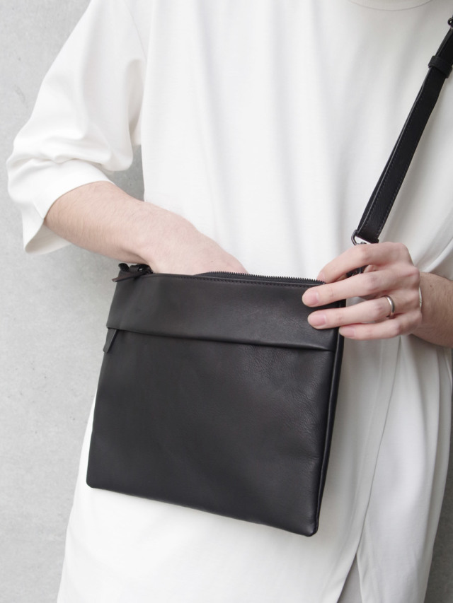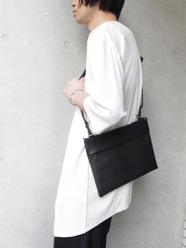 上質なカウレザーを使用したサコッシュバッグ。ストラップは取り外し可能なので、小ぶりなサイズ感はクラッチバッグやバッグインバッグとしての活用にもオススメ。