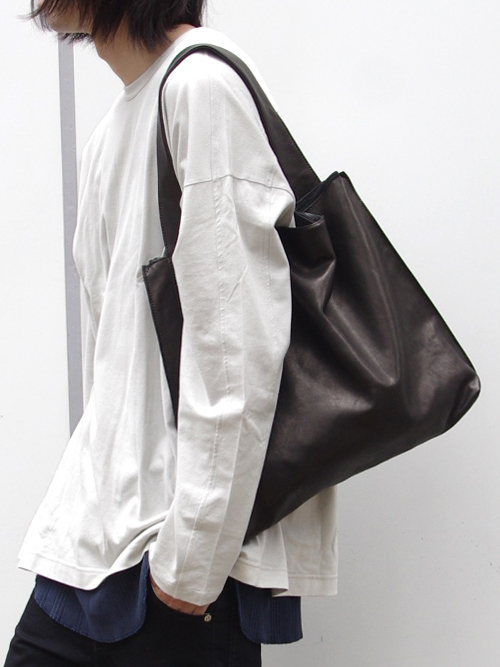革の表情はくたっとしていて、使い始めからすぐに馴染みやすい柔らかさが特徴的。次第に自然な落ち感と艶が出てくる経年変化も楽しめます。