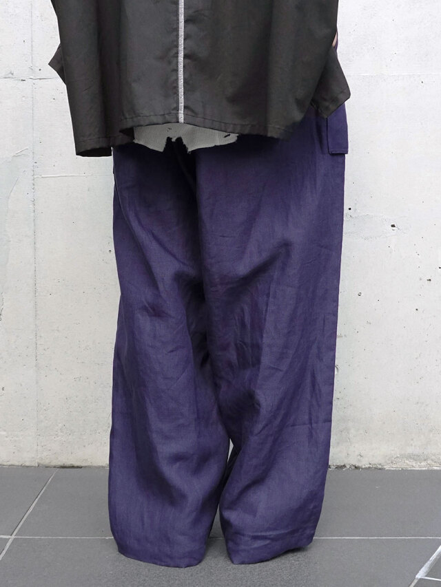 ゆとりのあるワイドストレートシルエットで、程よいボリューム感を演出。リラックス感がありながらも品のあるシルエットが特徴的。ウエストゴムと内側にはドローコードを通したイージー仕様でリラックスした穿き心地でお楽しみいただけます。