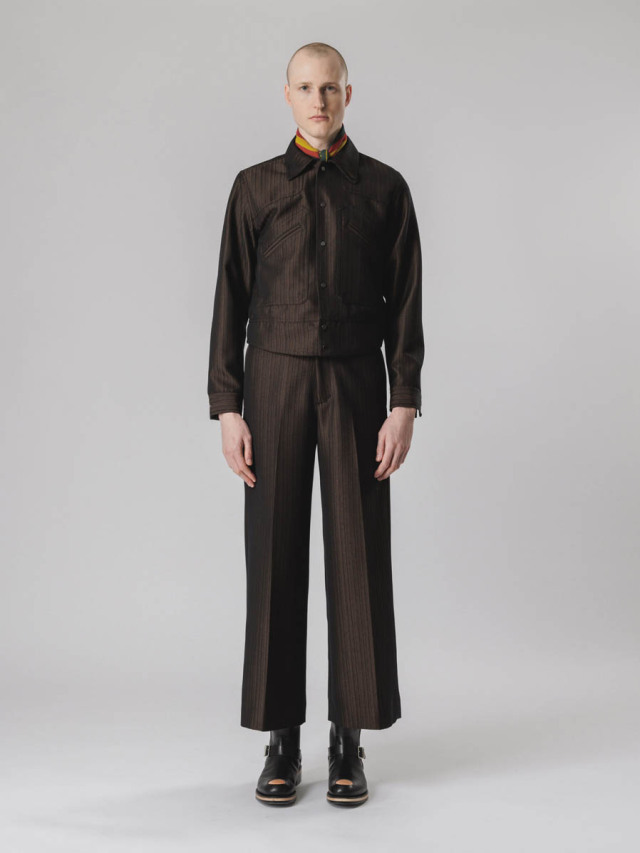 今季の素材にはオーストラリアのグランピアンズウールが用いられ、奥行きのあるヘリンボーン柄で構成。