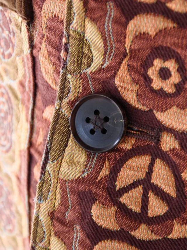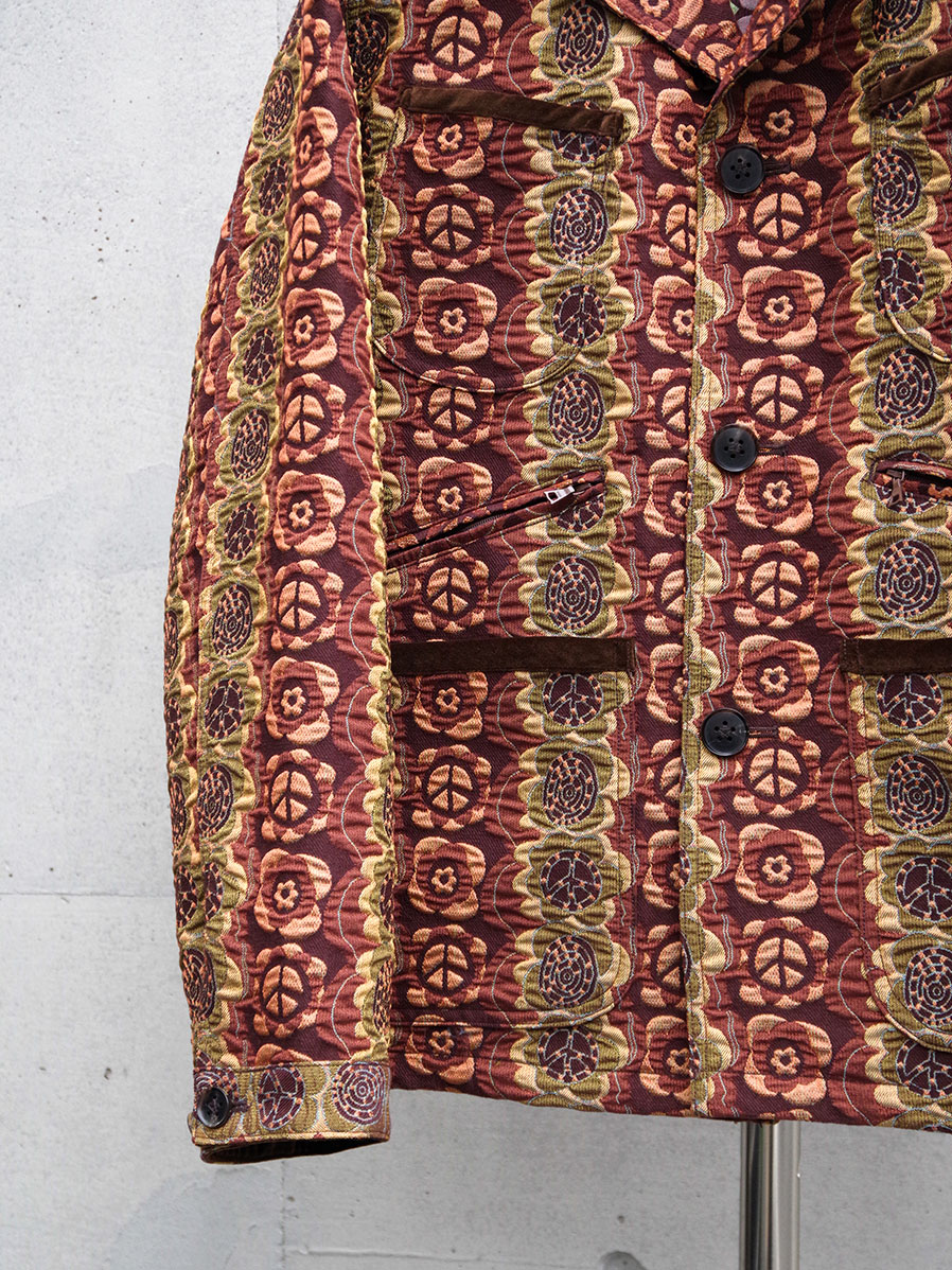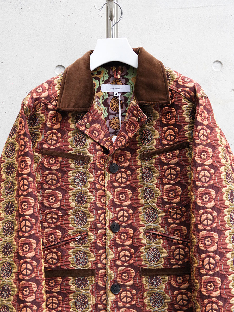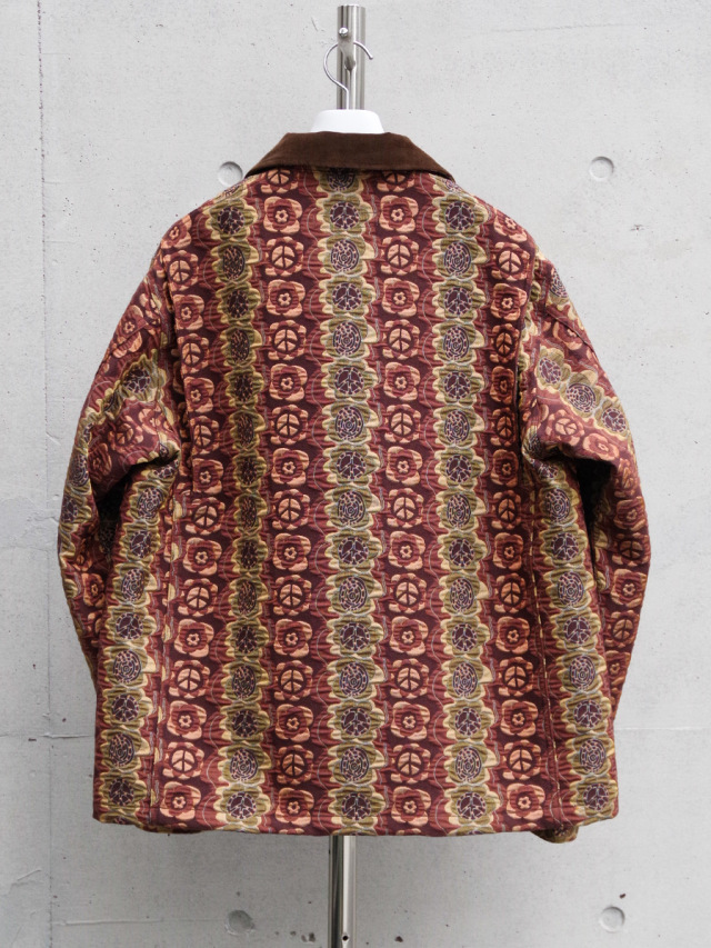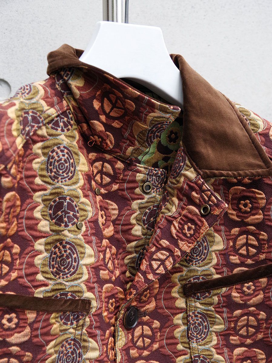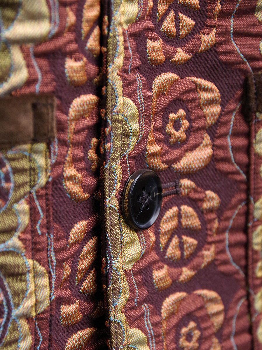 街でも一際目を引くデザイン性の高いテキスタイルと、それゆえにシンプルに位置付けたカバーオールとしてのフォルム。実用性の中に、ファッションを楽しむことを思い起こさせてくれる作品です。