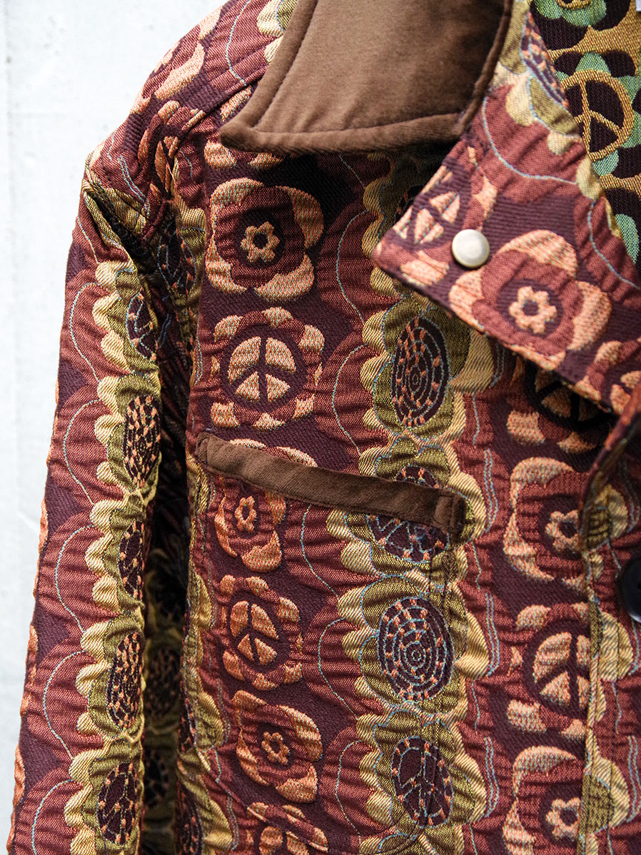 オリジナルで製作された"フラワー&ピース"テキスタイルが圧倒的な存在感を放つ本作。