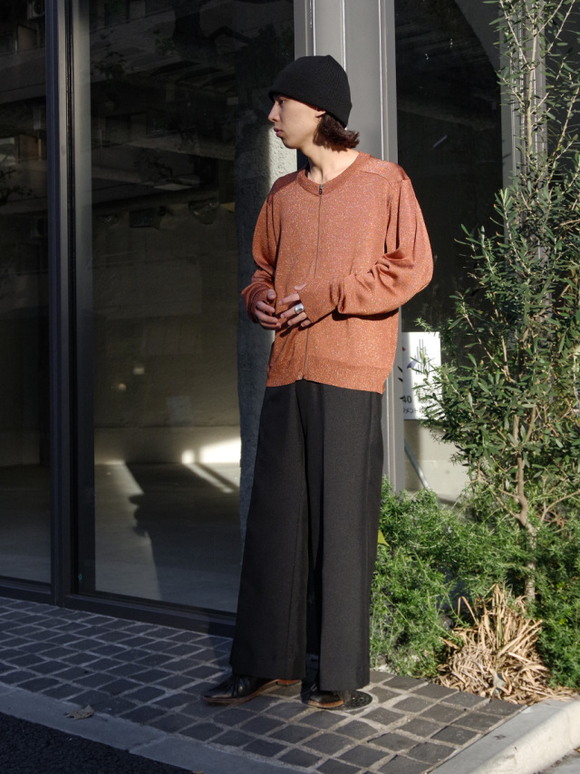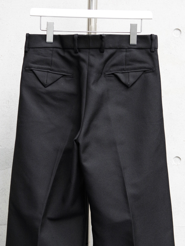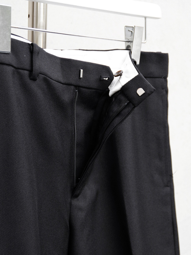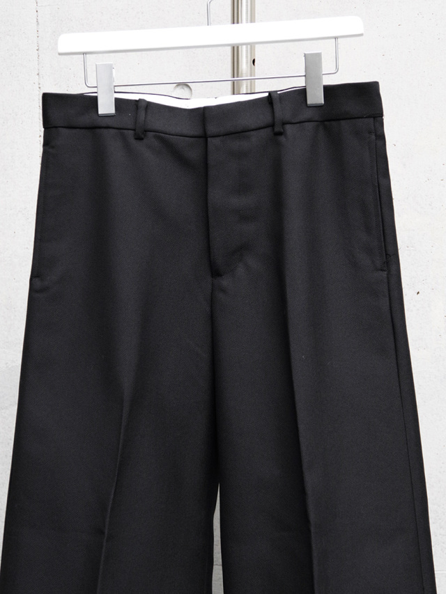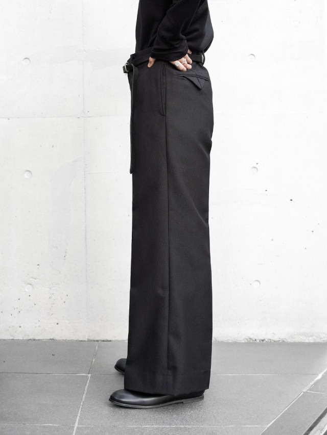 ノータック仕様である為、腰元は体に沿う着用感。裾にかけては体と衣服の空間が生まれ、写真でも伺えるAラインの美しさは、モードスタイルの頂点を行く完成度が非常に高いシルエットです。