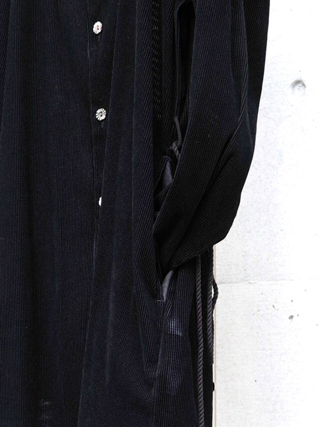 サイドにはポケットも設けられ、カジュアルに羽織スタイルを楽しむのもおすすめ。ウエストに通されたベルトでシルエットにアレンジを加えることも可能です。