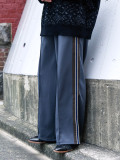 フロントにはクリースステッチを施し、トラックパンツなのにスラックス然とした不思議なバランスが上品な印象を創出。直線的に広がる嫌味のない絶妙なフレアシルエットにすることで、裾まで落ちる様に綺麗なワイドラインが描かれていて、これが非常に完成度の高いシルエットに。きっとこの"最終形"に至るまでに幾度となく緻密な修正が繰り返されてきたのだろうと想像してしまいます。