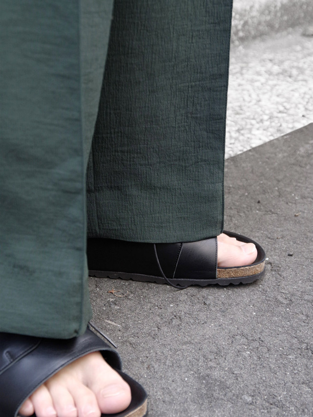 レザーシューズでスラックス感を出して、スニーカーでカジュアルに、和のテイストがある生地感を活かしてサンダルとのコーディネートもおすすめです。