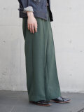 ワイドストレートのラインが非常に美しいスラックス。素材には緯糸に強撚糸を使用することで生地に意図的な膨らみを出した楊柳素材を使用し、浮かび上がる陰影が印象的です。