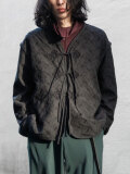 同色のブラックで繊細に構成された花柄は、間近で視認するかもしくは言われなければおよそ"花柄"と認識することのない控えめなもの。それによりファンシーなイメージになりがちな"花柄"を、全く別の奥ゆかしく技巧の凝らされた"洗練されたテキスタイル"へと押し上げています。