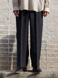 ワイドストレートのラインが非常に美しいスラックス。素材には緯糸に強撚糸を使用することで生地に意図的な膨らみを出した楊柳素材を使用し、浮かび上がる陰影が印象的です。