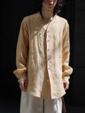 トップボタン横にプラスされたボタンは、アウターのインナーとして用いる際にネック周りの合わせを狭められ、レイヤードの見え方を調節する役割に。