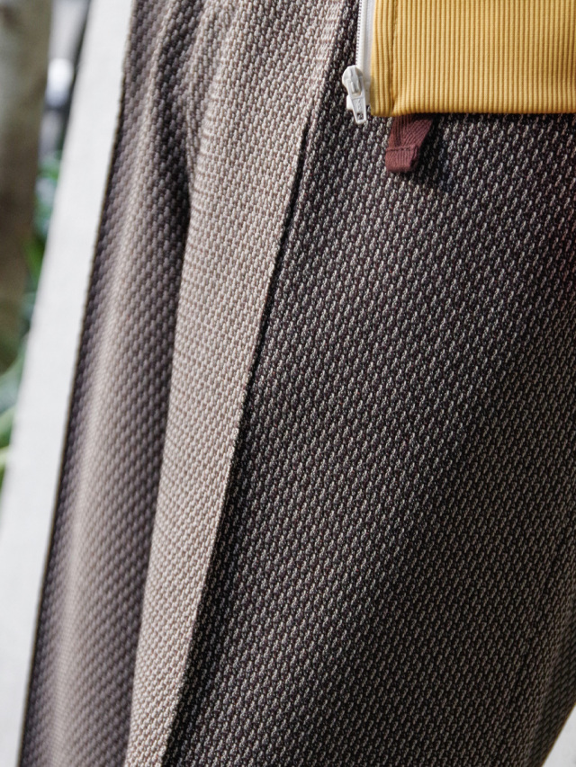 素材自体はメッシュ組織で通気性が良く、程良い2WAYストレッチの穿き心地は春夏秋冬とシーズン問わず活躍してくれそう。立体感のある生地感は浮かび上がる陰影が印象的です。