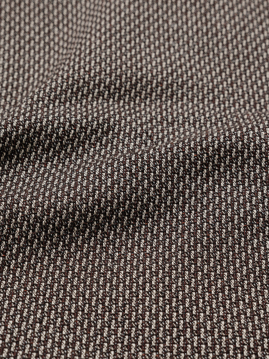 空気の力で糸を絡ませることで不規則な糸節を表現したリネン調のかすり糸と、TOP調のミックスカラーを表現するウール調のナット糸が見事に組み合わさり、ナチュラルで深みのある素材に仕上げられています。