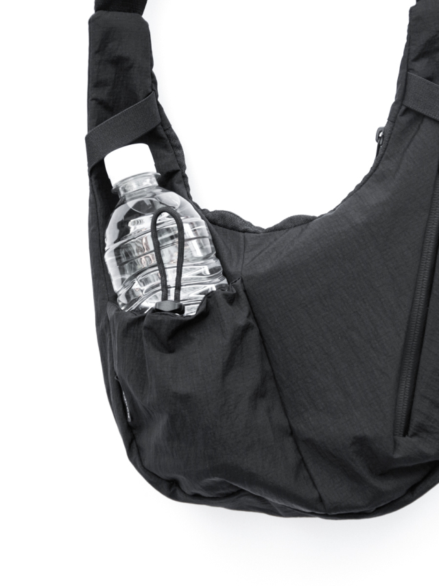 メインコンパートメント内にレイヤーポケット、外側にはドローコードで口を絞れるポケットに加え、サイドからアクセス可能な大きめのポケットを装備。約200gの重量で使い勝手も良く、旅先でのセカンドバッグとしてもオススメです。