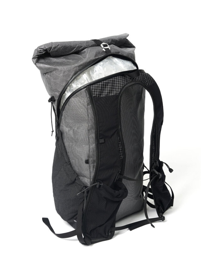 It has a roll-top style that can be arranged according to the volume of luggage, and is designed to be easy to use for everyday use by having a zipper that surrounds the back and front. While many general UL backpacks have specifications where the access route to the main compartment is only from the top, this design is very well thought out for the convenience of the user.
