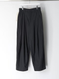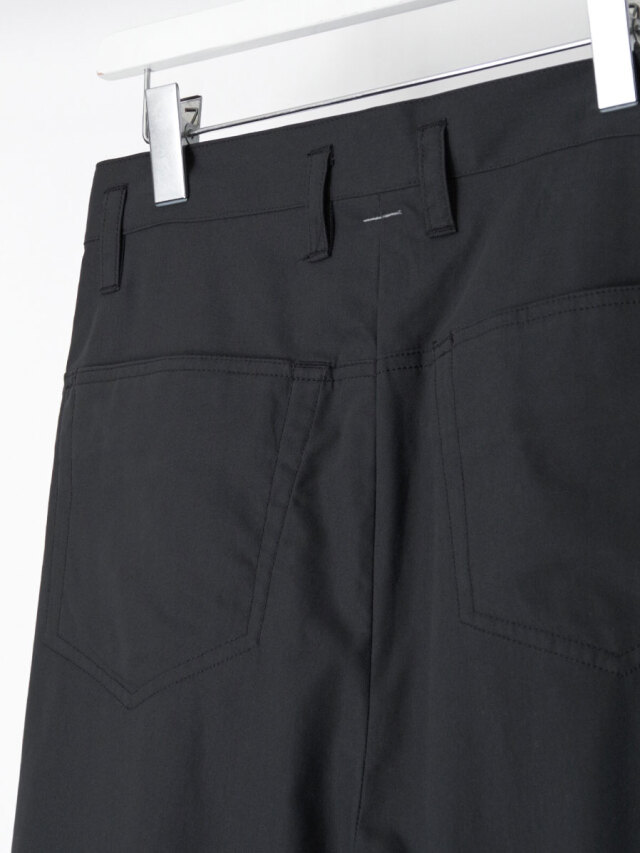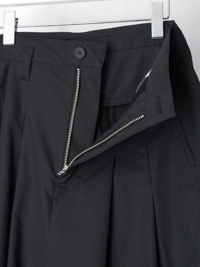 たっぷりと生地を取ることで筒状のボリュームが生まれ、前方向に重心を感じさせる構築的なシルエットを形成しています。ウエスト位置をやや高めに設定して着用することで、その立体的なラインがより一層際立ちます。