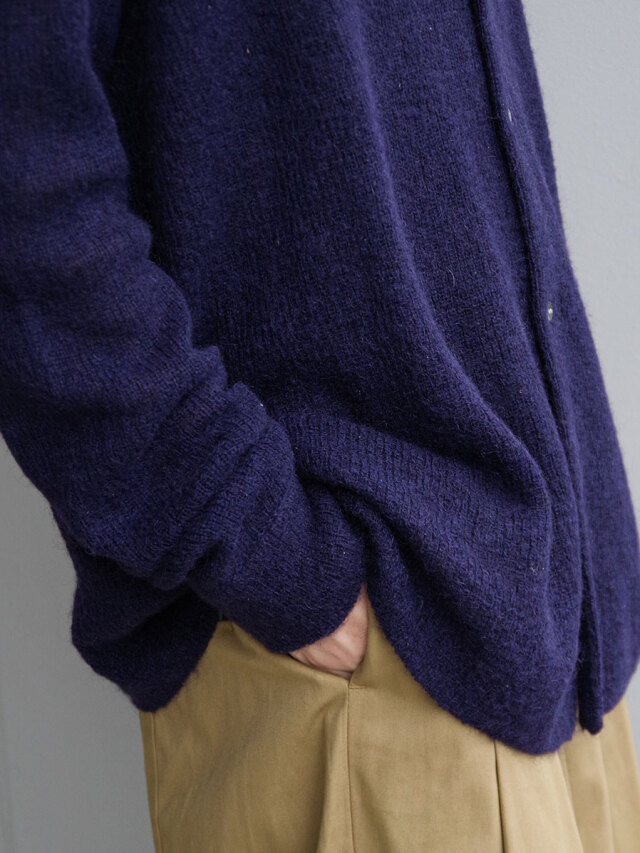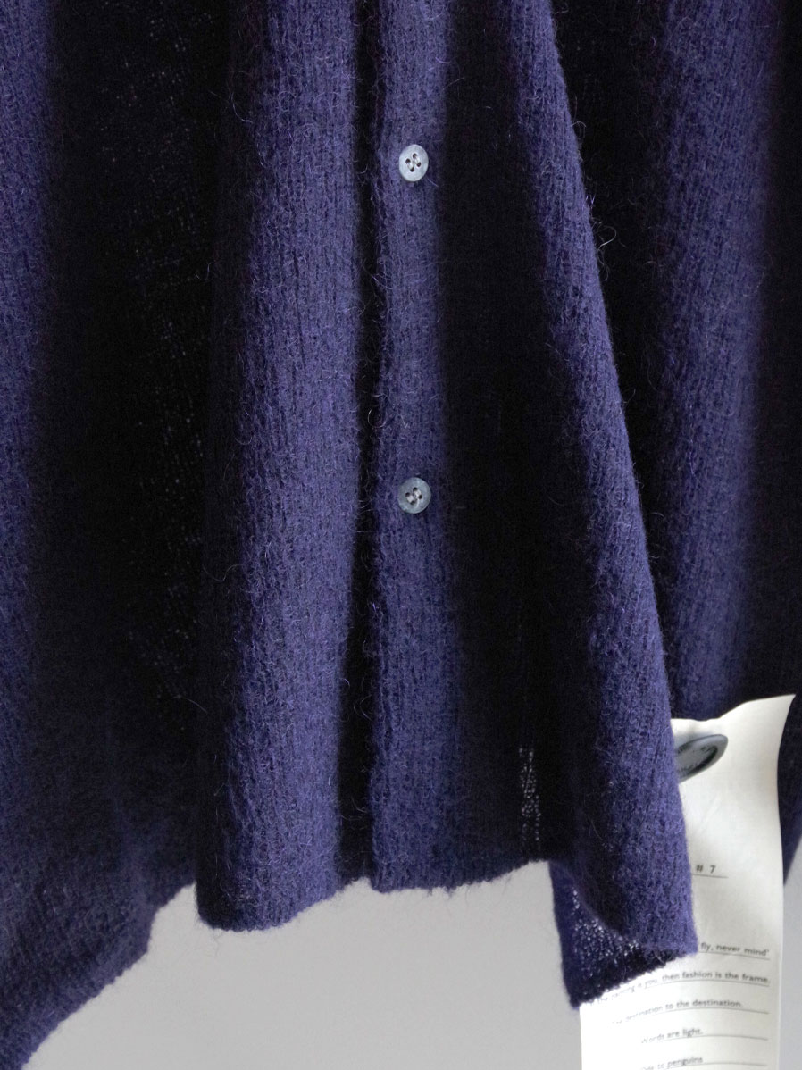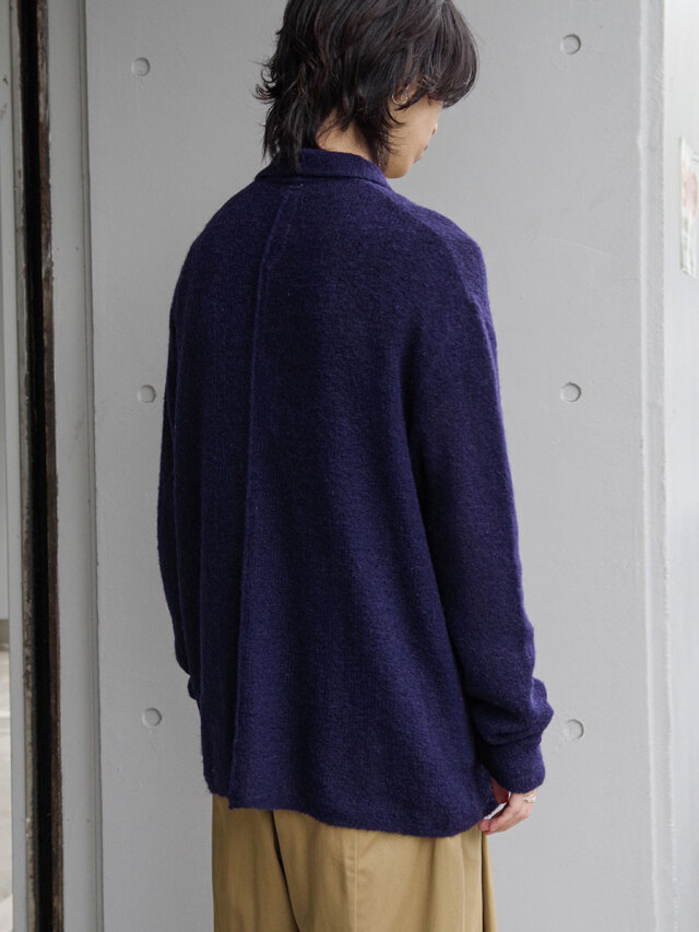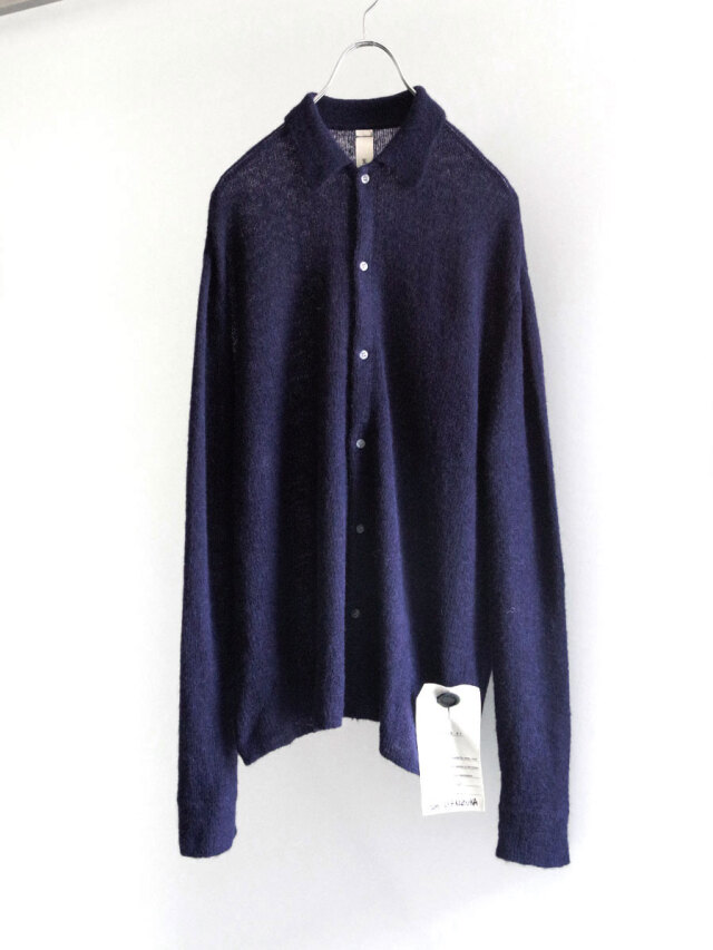 モヘアをブレンドした軽やかな生地感が特徴のニットシャツ。襟付きのデザインによって、一般的なカーディガンとも異なる存在感を放つ一枚です。