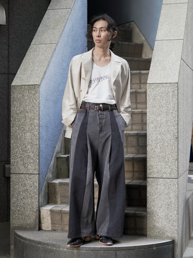 SHINYAKOZUKAの代名詞とも言えるBAGGYシリーズにリメイクモデルが登場。40インチ以上のLevi's501のデニムを解体し再構築させた圧倒的な存在感が光る一品となっています。