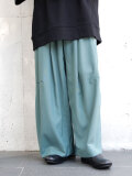 シーズナルカラーであるJADE(翡翠)というカラーネームに因んだ印象的な色合いは、カラーパンツながらも気品を感じさせる仕上がりに。本作ではドレープを美しく演出するトロピカルウール地を採用し、その軽やかで落ち感のある生地感は風をはらむことで清涼感を与えます。