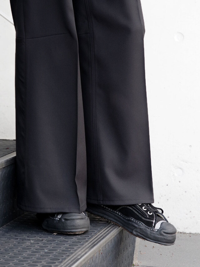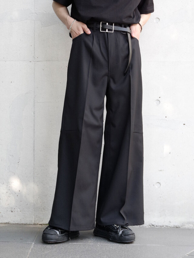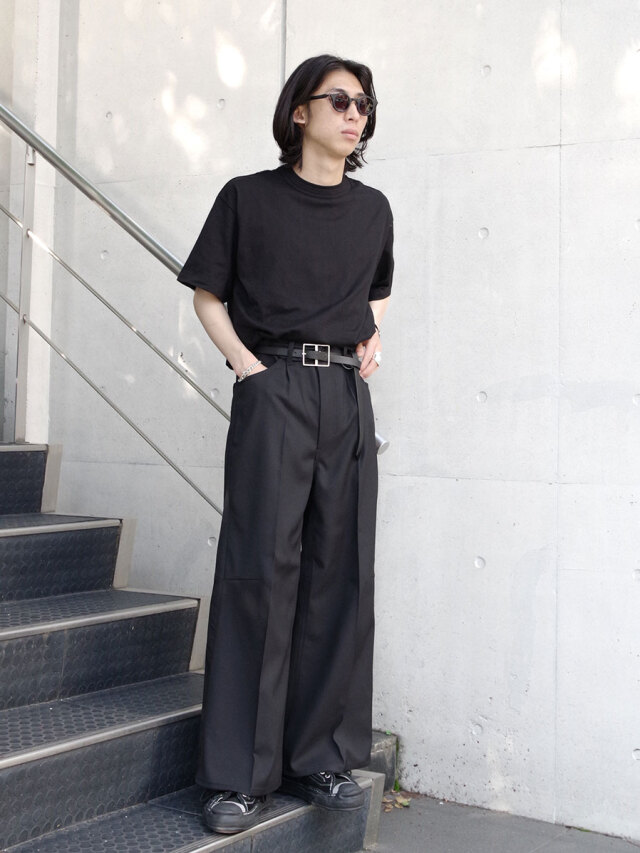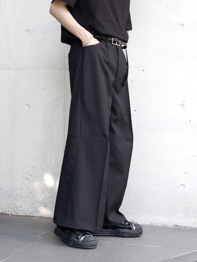 流れるように美しいシルエットはモダンな印象を与え、ワイドすぎない絶妙に落とし所を踏まえたデザインでコーディネートの汎用性も高いアイテムです。