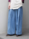 タックインスタイルや、素材感を活かして夏はサンダルとのコーディネートも楽しめるアイテムです。