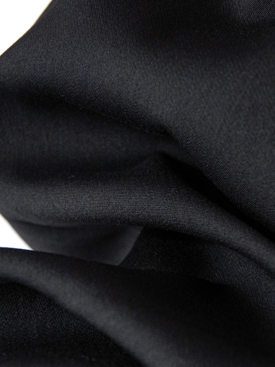 Crafted from deadstock fabric, the black version uses a wool–polyester blend that delivers a subtle sheen and structured drape, resulting in a clean, poised appearance with a classic yet contemporary tone.