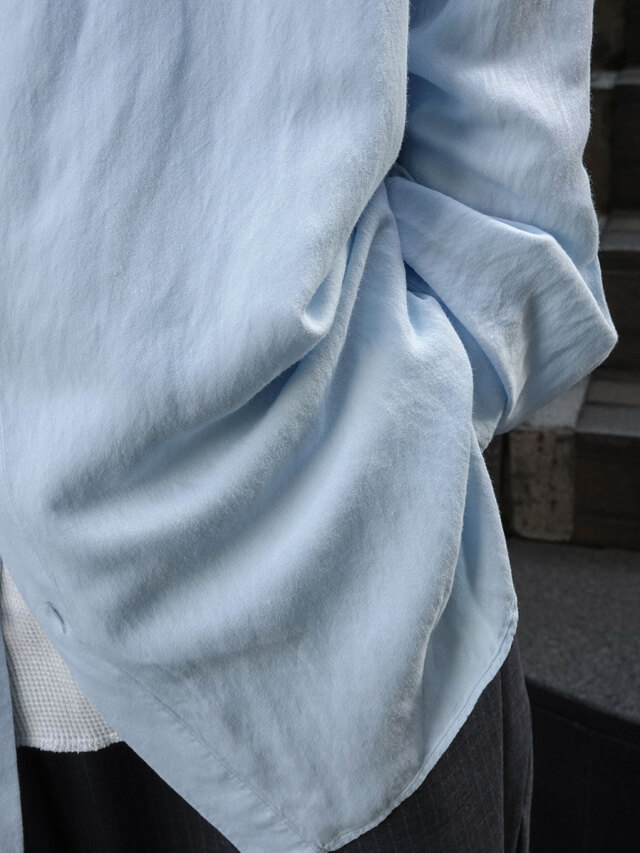 程よいオーバーサイズのシルエットで作成することでレーヨン特有の柔らかな落ち感、