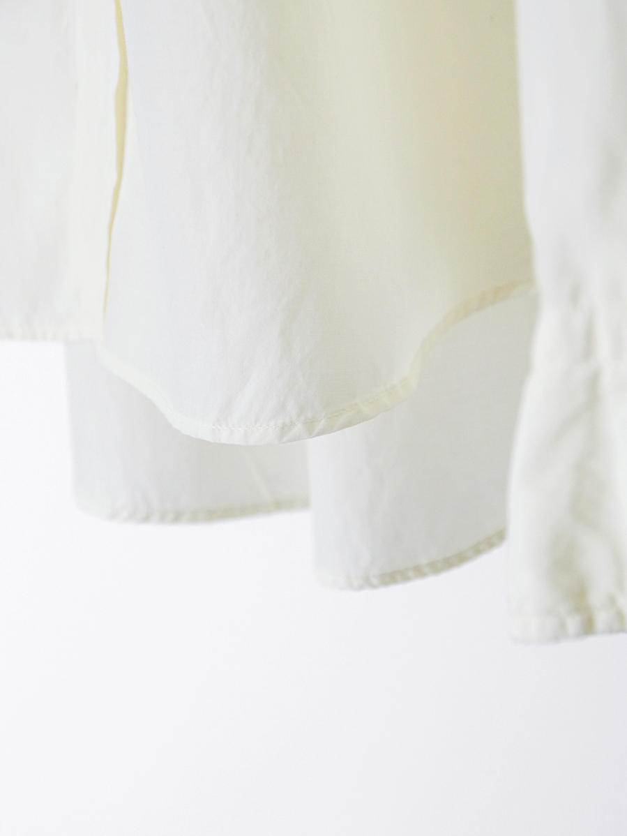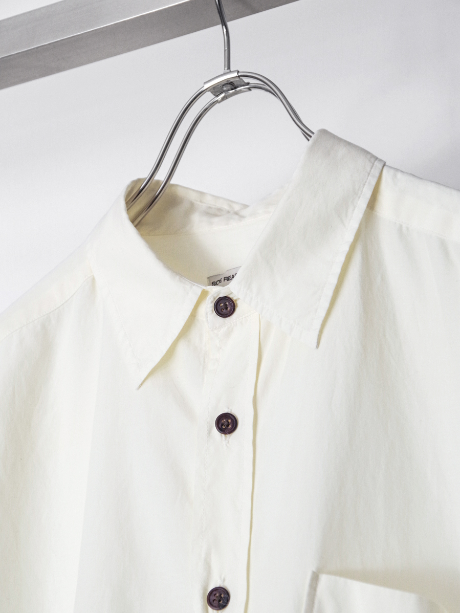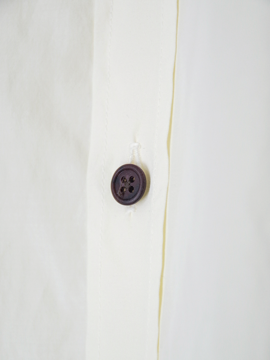シャツ作りに定評のあるsoeならではの完成度で、シルエットのバランス、色味、質感、ボタンの選定に至るまで丁寧に整えられた仕上がりです。シンプルな佇まいの中に、細部まで行き届いた設計が感じられます。
