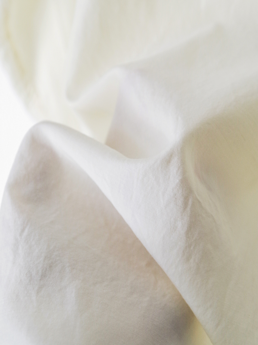 素材にはヴィスコースとコットンを使用。ヴィスコース特有の上品な落ち感に、コットンのナチュラルなタッチが重なり、軽やかで心地よい着用感を生み出します。ごく淡く黄色味を帯びたレモンカラーが、装いにさりげない華やかさを添える一着です。