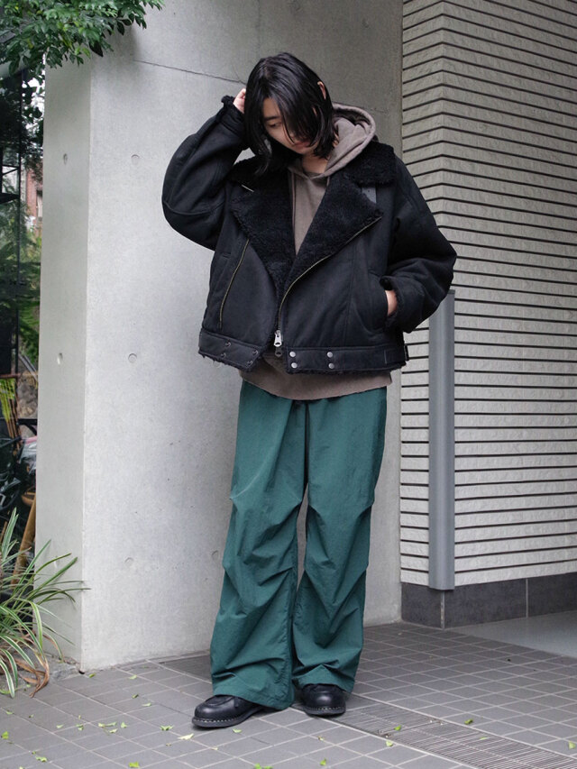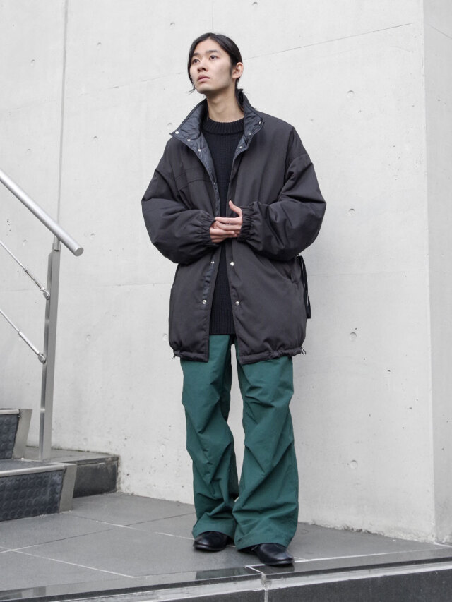 Although military-based, these nylon pants reflect Soe's unique urban and sophisticated creativity.