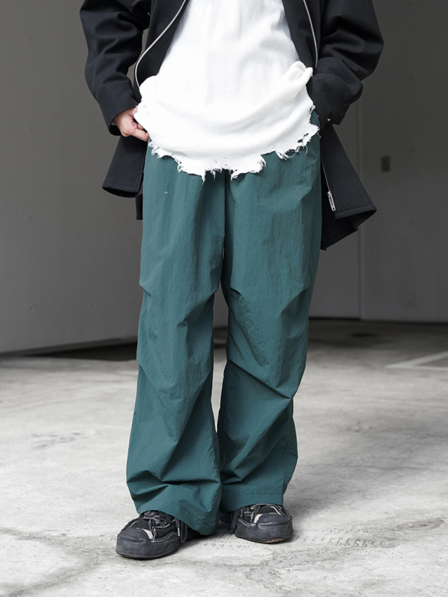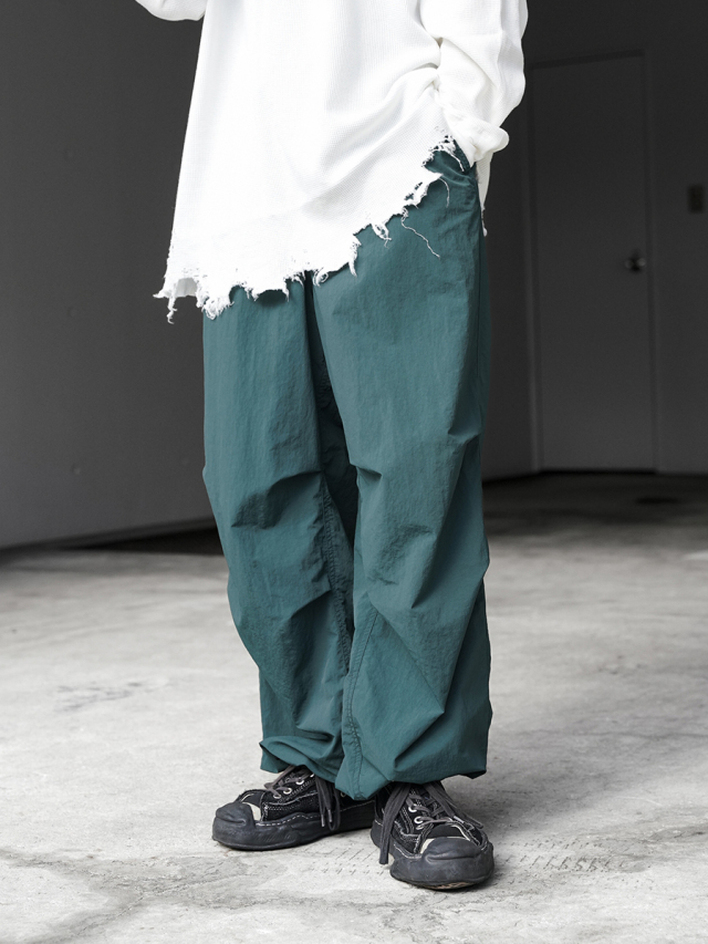ミリタリーをベースにしながらも、soeならではの都会的で洗練されたクリエイティビティが反映されたナイロンパンツです。