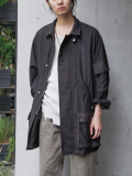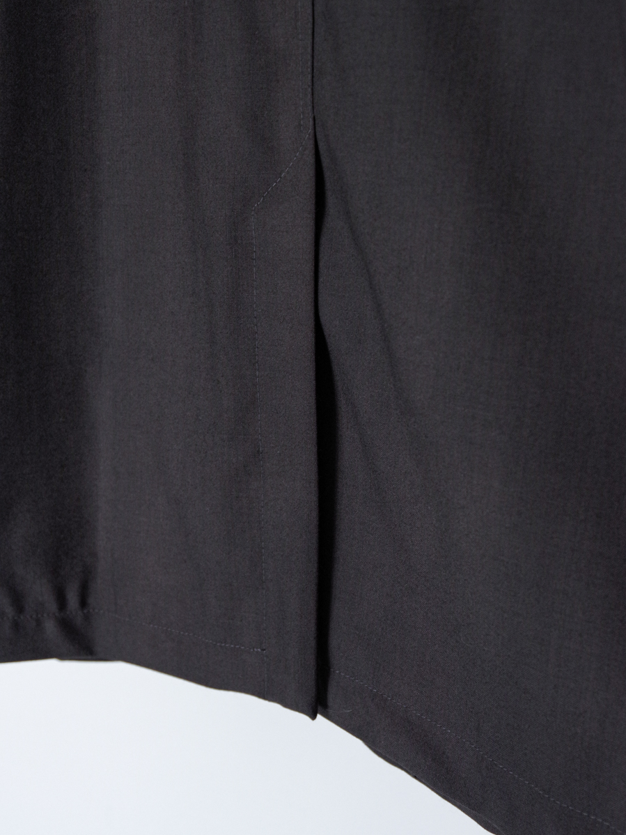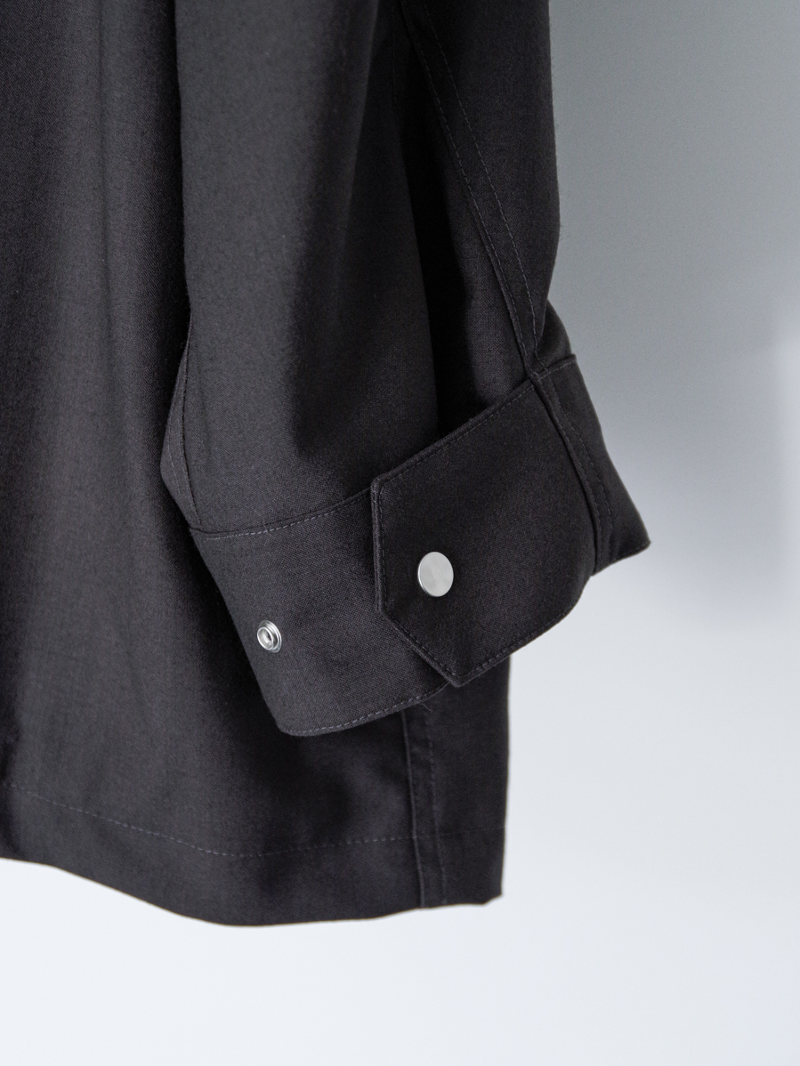 Designed with a longer length than a traditional coverall, the half-coat silhouette gives it a strong presence as outerwear while maintaining a light feel. Made from summer wool, the fabric carries an airy quality that moves gently with the breeze, creating a seasonal and refined look.