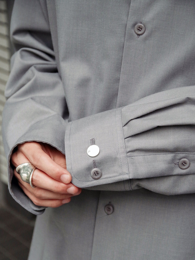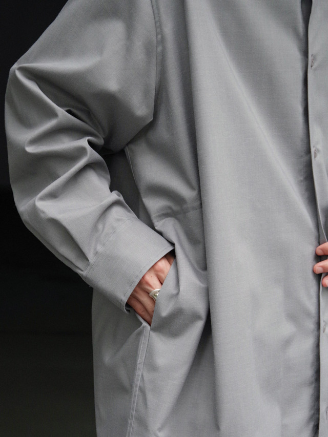 素材には高機能テクニカルウールを採用し、天然素材の風合いを活かしながらも撥水性、防風性、透湿性を備えた一着に。見た目には上質なウールの質感そのままに、実際は悪天候にも強いというハイブリッドな側面を併せ持っています。さらっとした生地で見た目以上に身軽な着用感もポイントです。