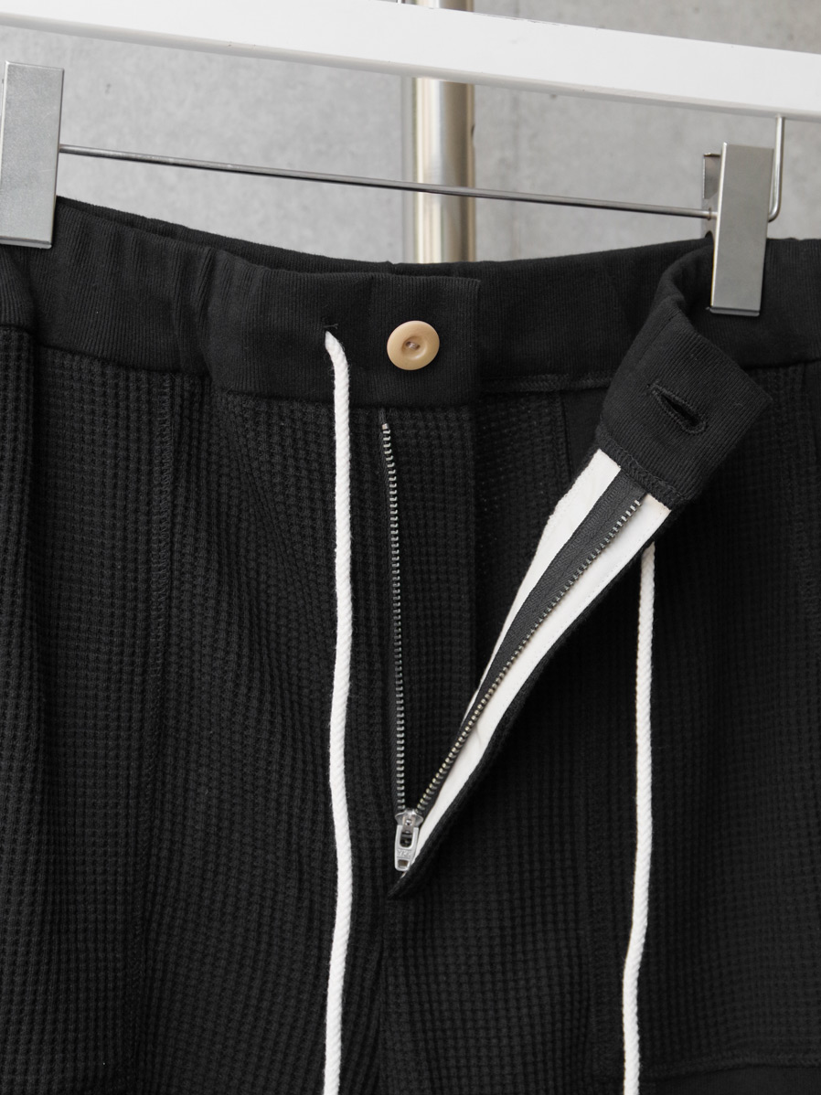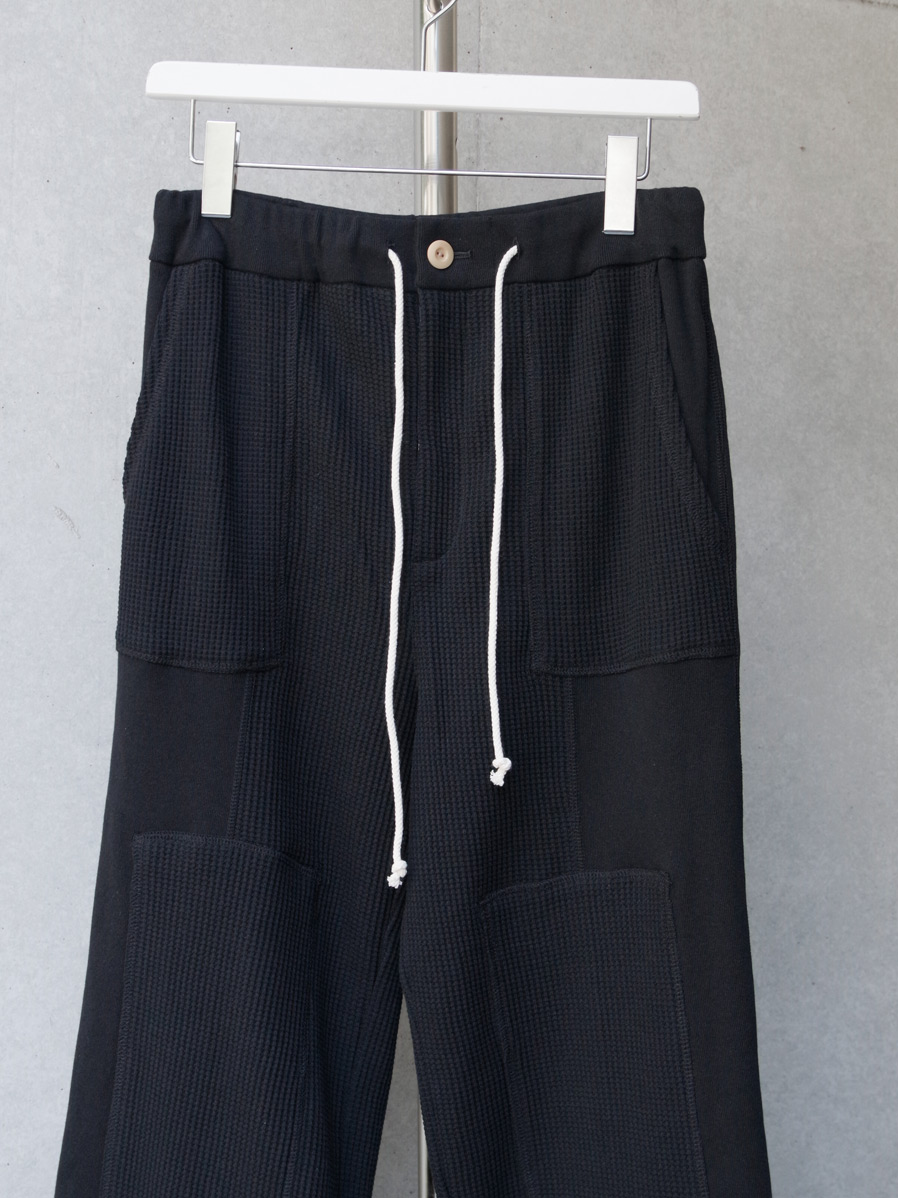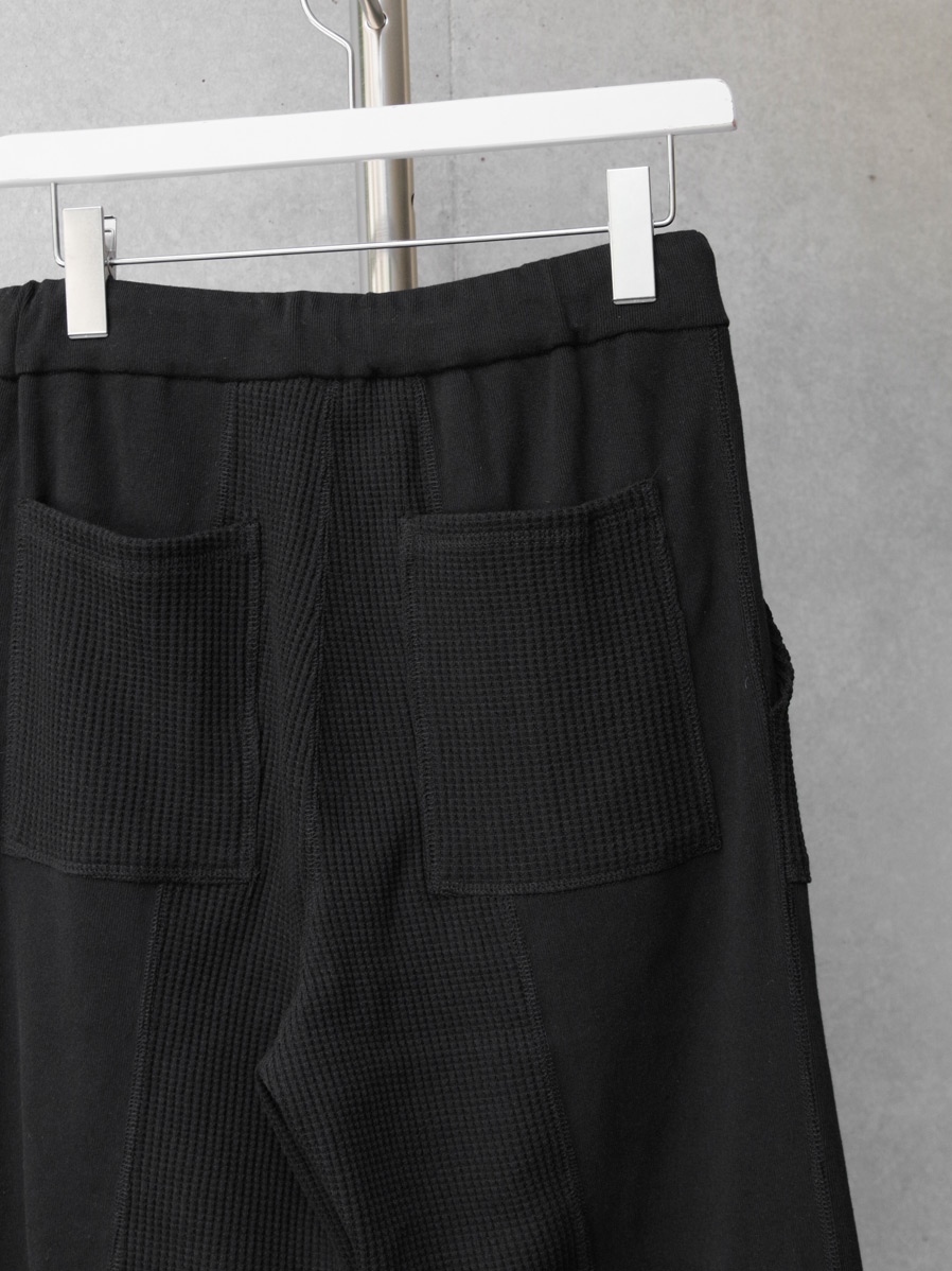 肉厚なワッフル素材とフライス生地の切り替えで製作されたリメイク感溢れる一品。伸縮性豊かでストレスフリーな穿き心地です。