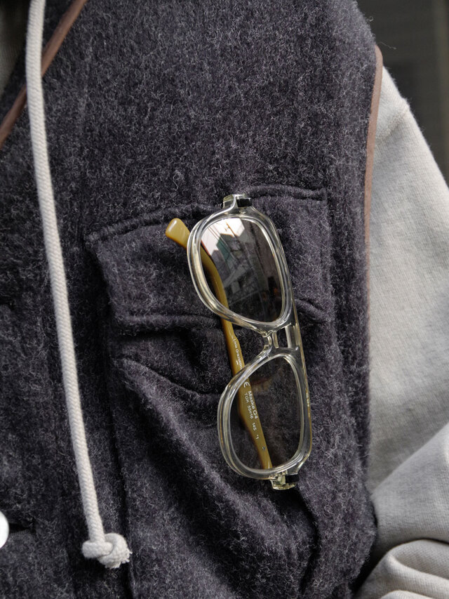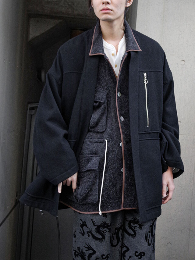 フロントの4つポケやペンポケットなどファティーグシャツのディティールを踏襲しつつも、落ち感のある生地により粗野な雰囲気が削ぎ落されております。