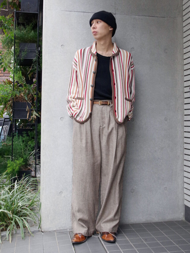 It goes well with thick silhouettes such as the 3-tuck wide pants from the same brand. The piping and concho buttons applied throughout the product are accents.