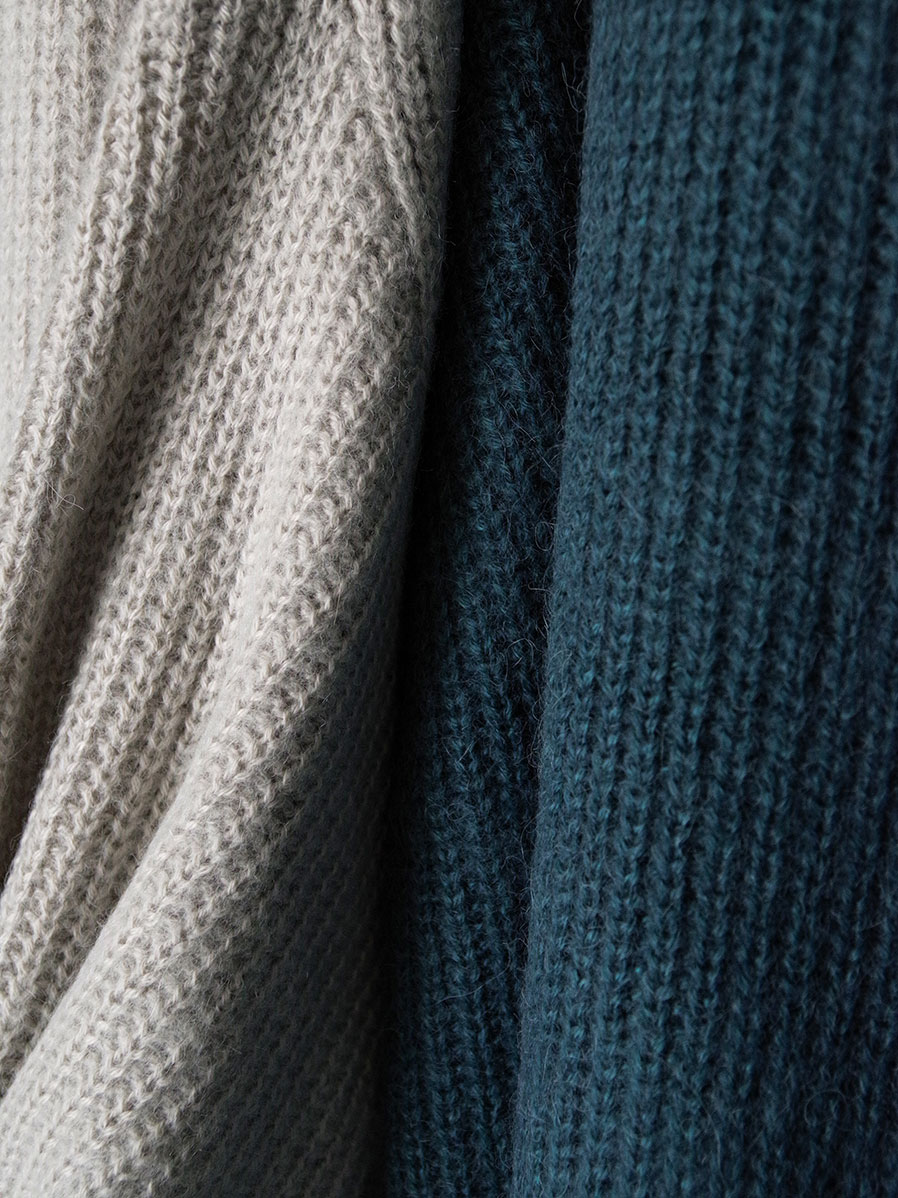 A crewneck knit crafted with 65% alpaca yarn, offering an exceptionally soft and luxurious touch.