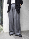 中肉でしっかりとした適度な張りを持ちながら、くったりとした柔らかなドレープ性も併せ持つキュプラ生地を使用したワイドパンツ。相反する表情を持つ素材に顔料コーティングを施し、さらに製品後に洗いをかけることで、独特のヴィンテージ感を備えた一本に仕上げています。