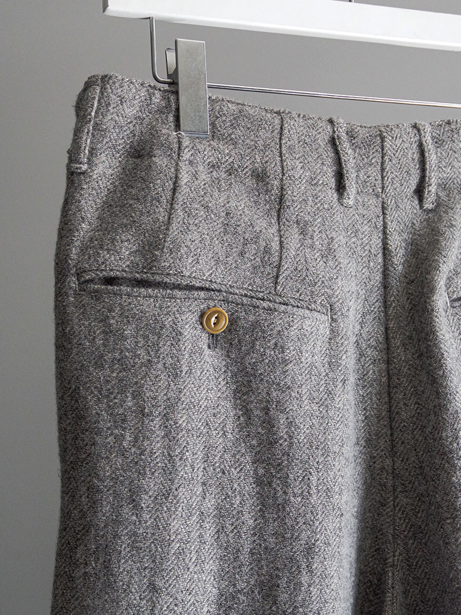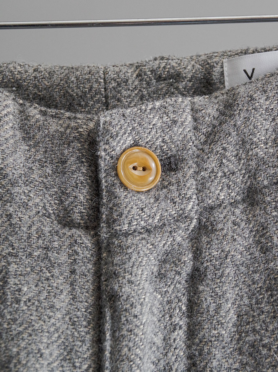 タテ糸にメランジウール、ヨコ糸にリネンを組み合わせたヘリンボーン生地を使用したシリーズ。
