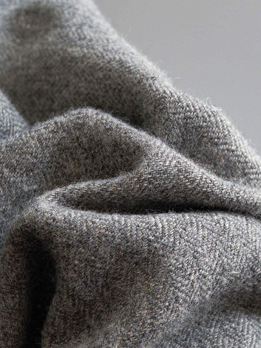 Part of a series crafted from herringbone fabric woven with melange wool in the warp and linen in the weft, this piece combines the best of natural fibers for a rich, textured finish.