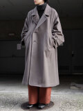 ダブル仕様のフロントを閉じると前身頃が文字通り二重になり冷たい外気をしっかり遮ってくれ、さらに襟を立ててスタンドカラーにもアレンジ可能なので真冬の寒さも安心。トレンチコートのようなバックヨークとセンターベントは後ろ姿にも印象を残してくれます。