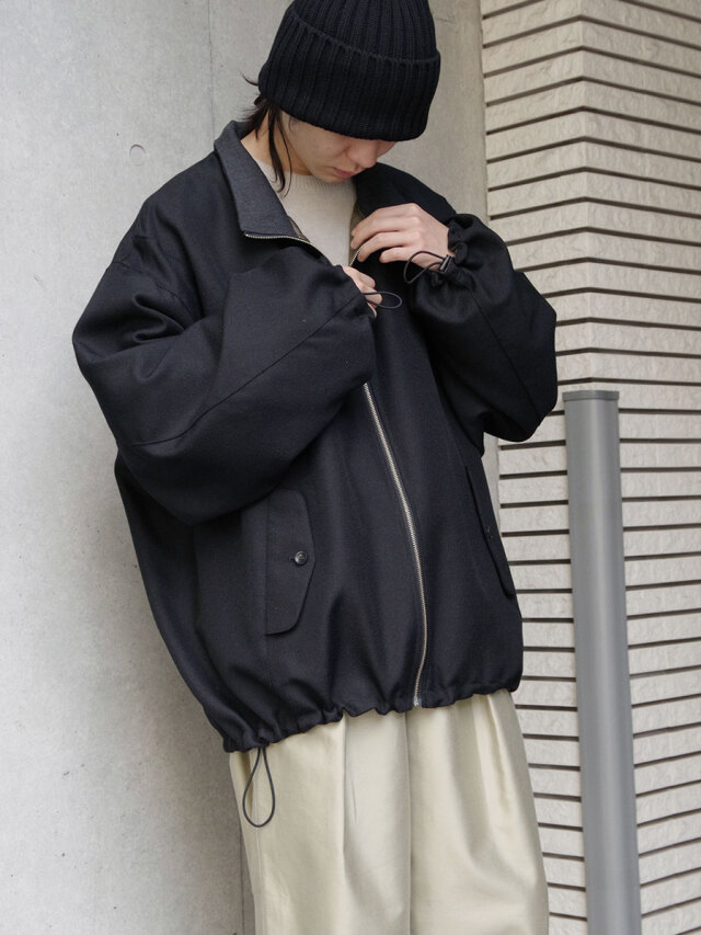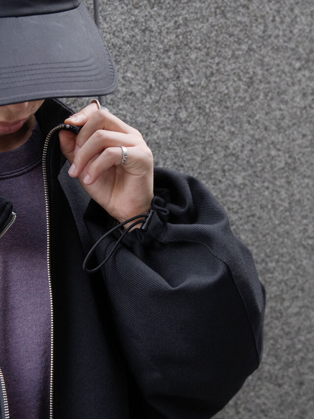 裾と袖口にはドローコードが付いており、絞ることで寒風を凌いだり、シルエットにアレンジが加えられる仕様に。ゆったりとしたオーバーサイズで、体型問わずユニセックスでお楽しみいただけるアイテムです。