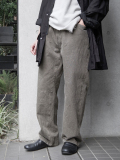 一見シンプルな5ポケットパンツでありながら、ウエストにはゴムを配したイージーパンツ仕様。ゆとりのある腰回りから裾にかけて緩やかにテーパードするシルエットが、リラックス感と上品さを両立しています。