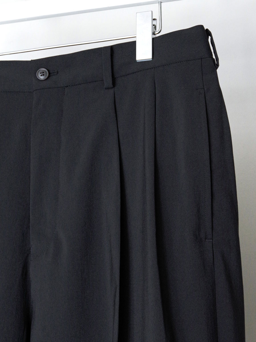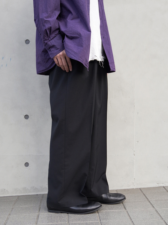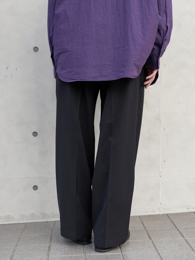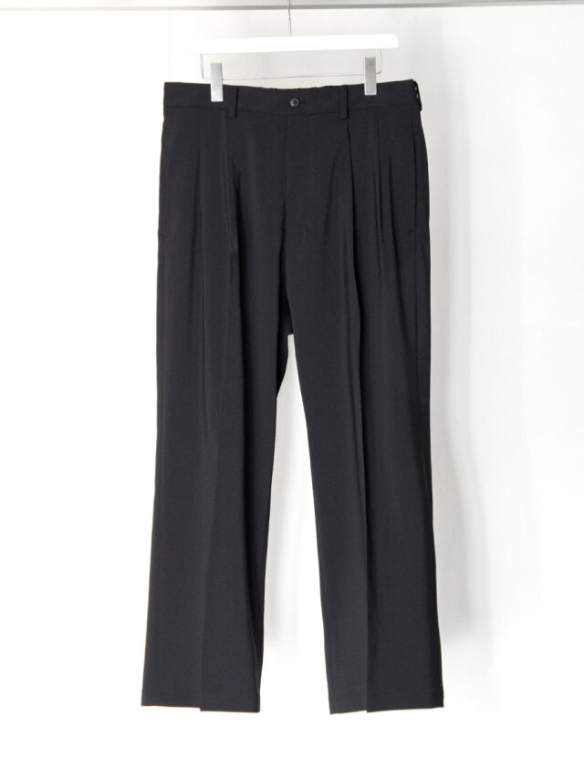 クラシックなスラックスをベースに設計された、フロント2タック仕様のワイドトラウザー。