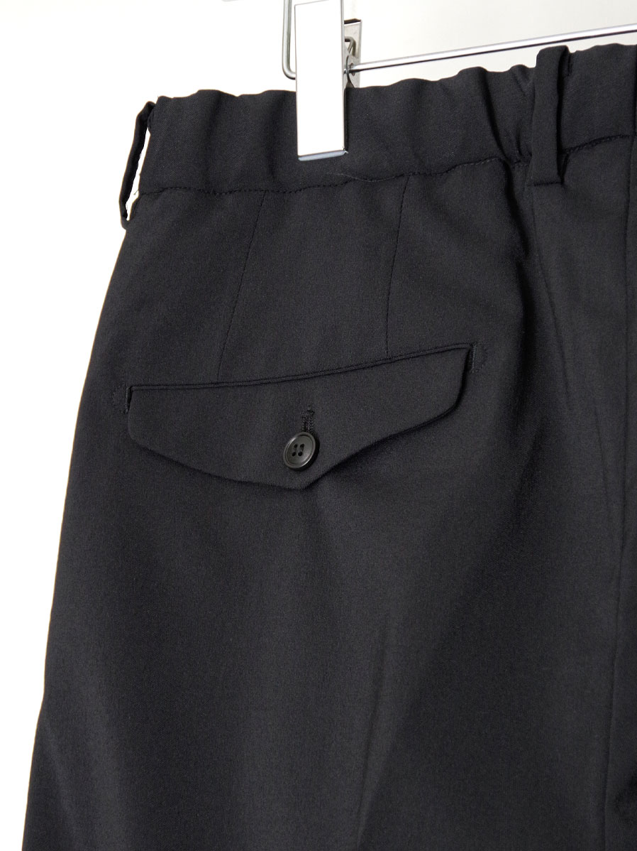 後身頃にはウエストゴムを採用し、性別や体格を問わず着用できるリラックスした穿き心地を実現しています。ゆとりのある設計でありながらも、品のある美しいワイドシルエットを保ち、どのようなスタイルにも自然に馴染む汎用性の高い一本です。