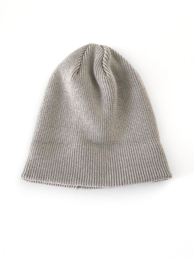形は、一般的なニットキャップよりも程よくボリュームを持たせ、ルーズに被れるサイズ感に設計。