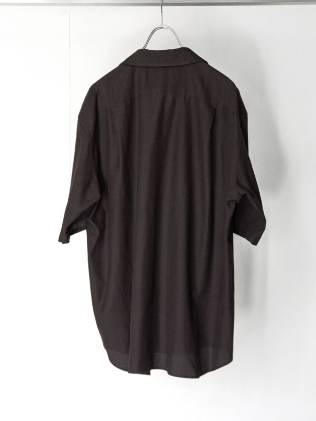 YOKO SAKAMOTOらしい解釈で仕立てられた、セミルーズシルエットのオープンカラーシャツ。