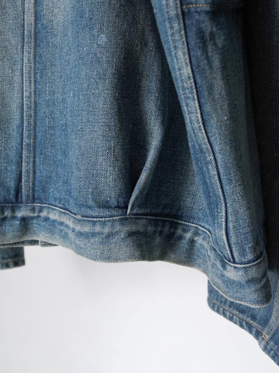 岡山県の機屋にて、時間をかけて丁寧に織り上げたセルビッチデニムを使用したデニムジャケット。